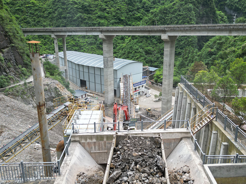 Le minerai entre dans le silo, est introduit dans le concasseur à mâchoires par l'alimentateur pour être transformé en pierres de moins de 60 cm, puis envoyé par le convoyeur vers le concasseur moyen pour être transformé en pierres de 5 à 60 mm. Le crible vibrant est utilisé pour sélectionner les produits finis. Certaines lignes sont équipées de cribles vibrants pour vérifier la taille des pierres et éviter tout blocage.