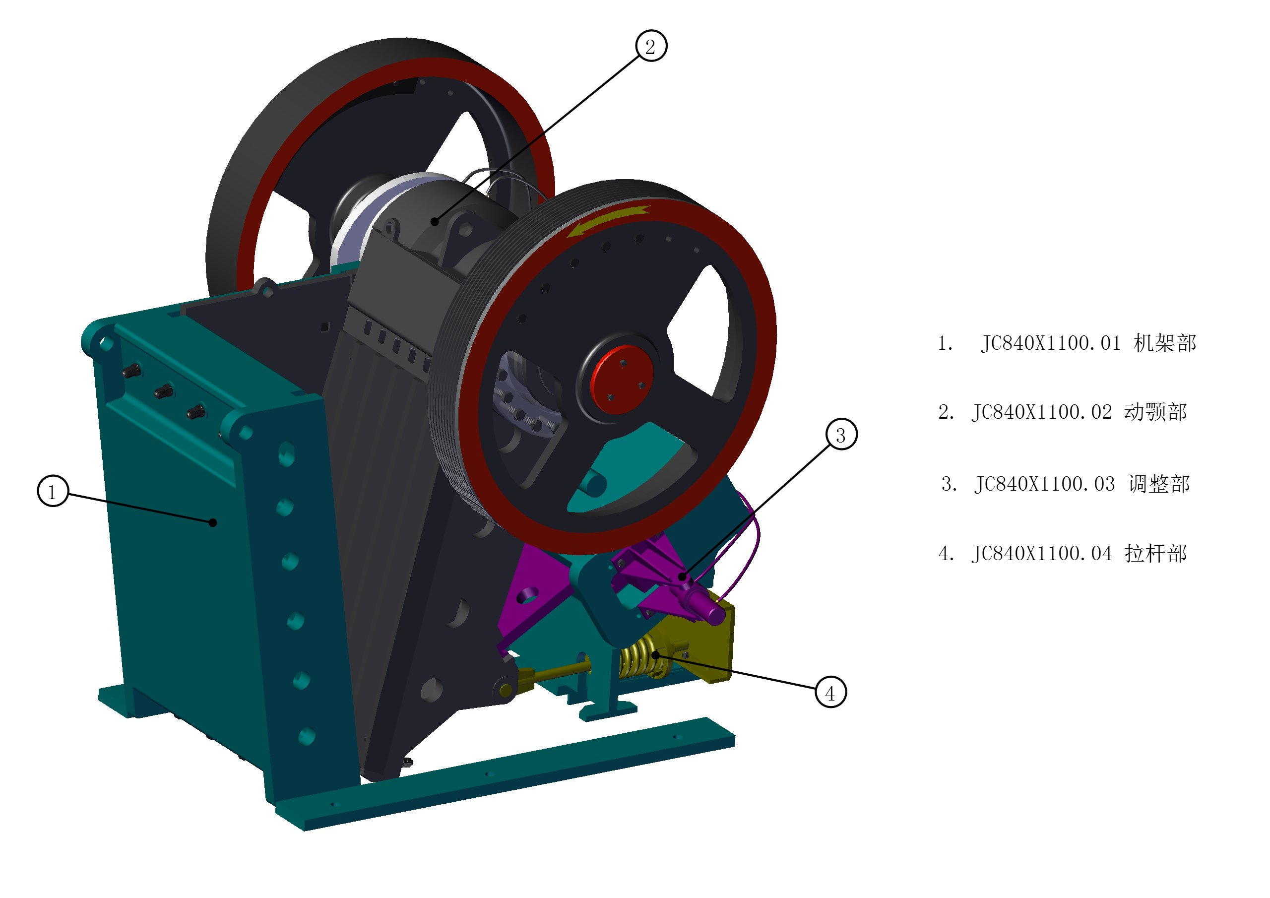 En fonctionnement, le moteur démarre et transmet la puissance à l'arbre excentrique via une courroie et une poulie, ce qui entraîne la rotation de l'arbre excentrique. Cette rotation entraîne l'oscillation périodique de la plaque à mâchoires mobile. À mesure que la plaque à mâchoires mobile se rapproche progressivement de la plaque à mâchoires fixe, l'écart entre elles se réduit progressivement, emprisonnant le matériau entre les deux plaques et le soumettant à d'intenses forces de compression, de cisaillement et de flexion. Ces forces combinées broient le matériau.